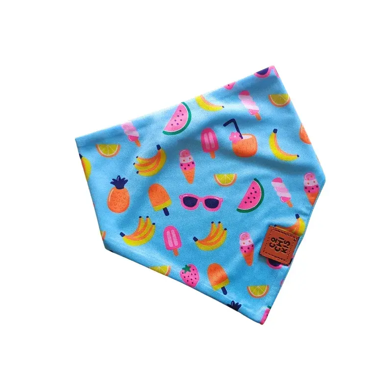 ¡Una bandana muy tropical! Si tu engreído no es de usar ropa porque le incomoda, ¡y más en este calor! Pues esta bandana será la mejor opción para lucir genial y estar cómodo a la vez.
