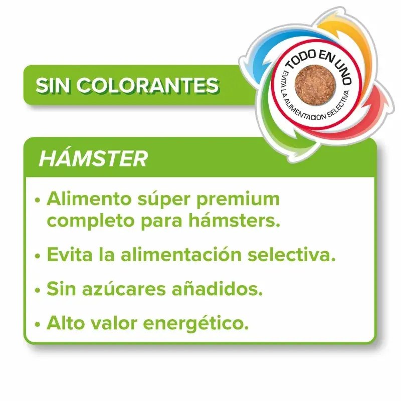 Un alimento seco super premium, extremadamente palatable y equilibrado que ha sido desarrollado en colaboración con veterinarios, dietistas y expertos en hámsters. Para todas las edades.