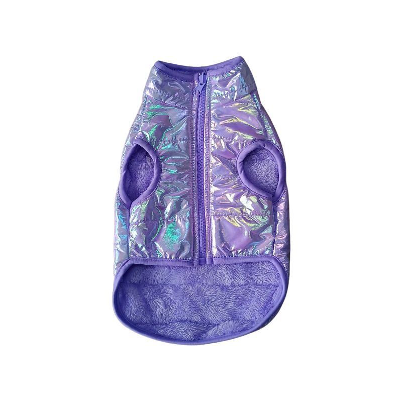 Lindo chaleco con acabado brilloso, para que tu engreído luzca espectacular en este invierno y se mantenga calientito. Con detalle de bordado, abertura para colocar la correa del collar o arnés e hipoalergénico, para pieles sensibles.