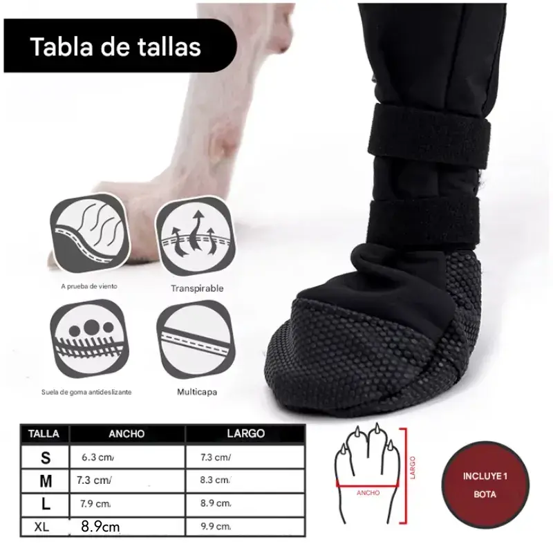 Ayuda a proteger las pata de tu perro contra superficies calientes, frías, ásperas o resbaladizas. El calzado para perros proporciona una barrera eficaz contra pavimento caliente, nieve, sal, piedras afiladas o superficies mojadas, evitando así irritaciones, cortes y quemaduras.