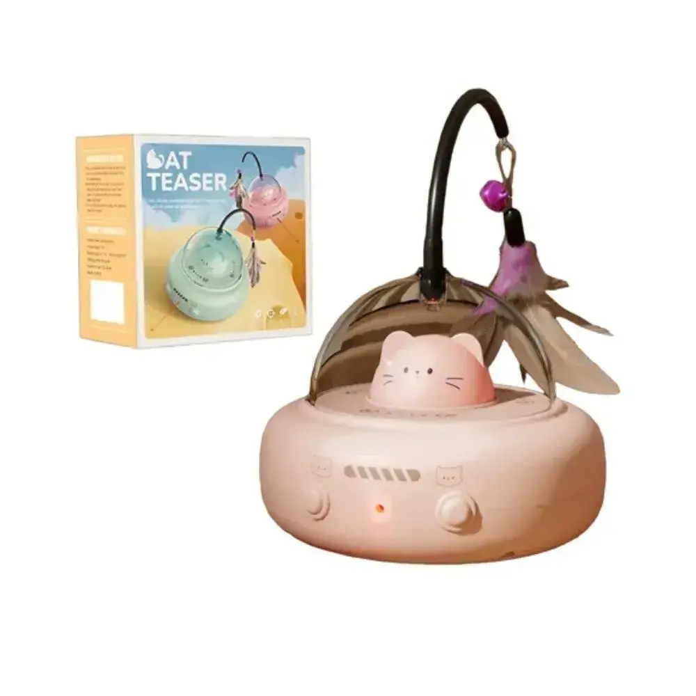 Juguete interactivo diseñado para estimular el instinto de caza y mantener activas a las mascotas. Incorpora puntero láser con luz roja y una pluma con cascabel que despierta la curiosidad y fomenta el juego. Cuenta con detección automática de movimiento, diferentes modos de juego y carga USB recargable para mayor practicidad. Está fabricado con materiales resistentes, lo que le brinda durabilidad frente a arañazos y mordidas. Su diseño compacto facilita su uso en el hogar y promueve la actividad diaria.