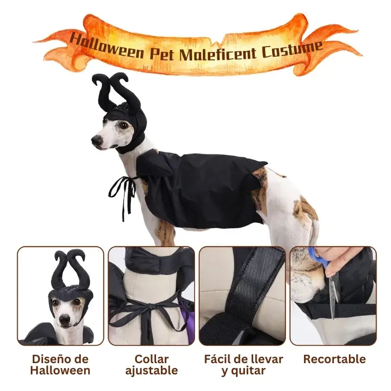 Emblemático disfraz de Maléfica para mascotas.