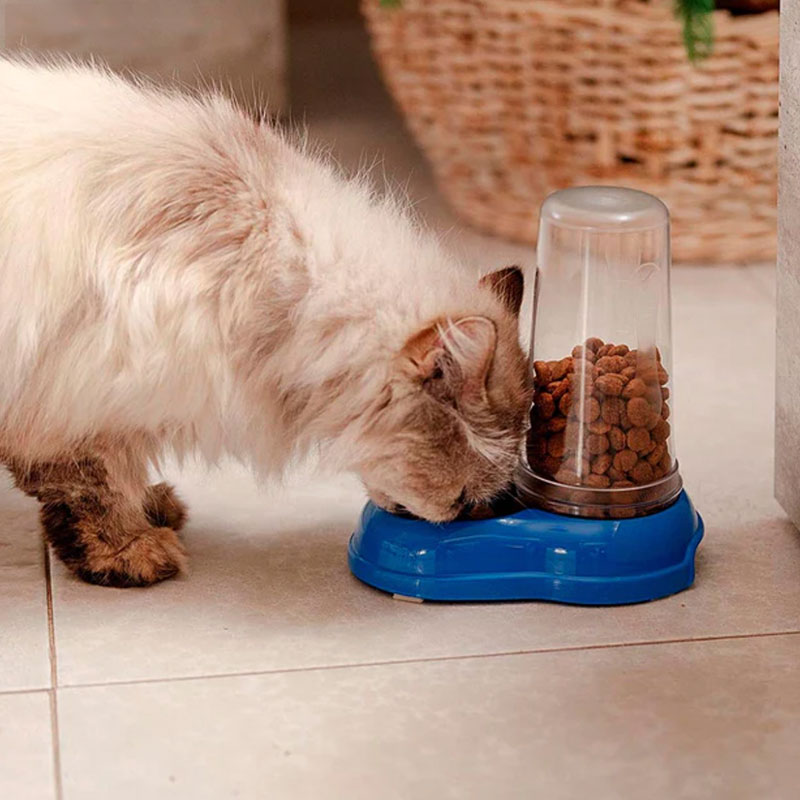 Mantén hidratada a tu mascota con este dispensador de agua o comida todo el día. Gracias a sus dos orificios de salida, puede utilizarse tanto para agua como para comida.