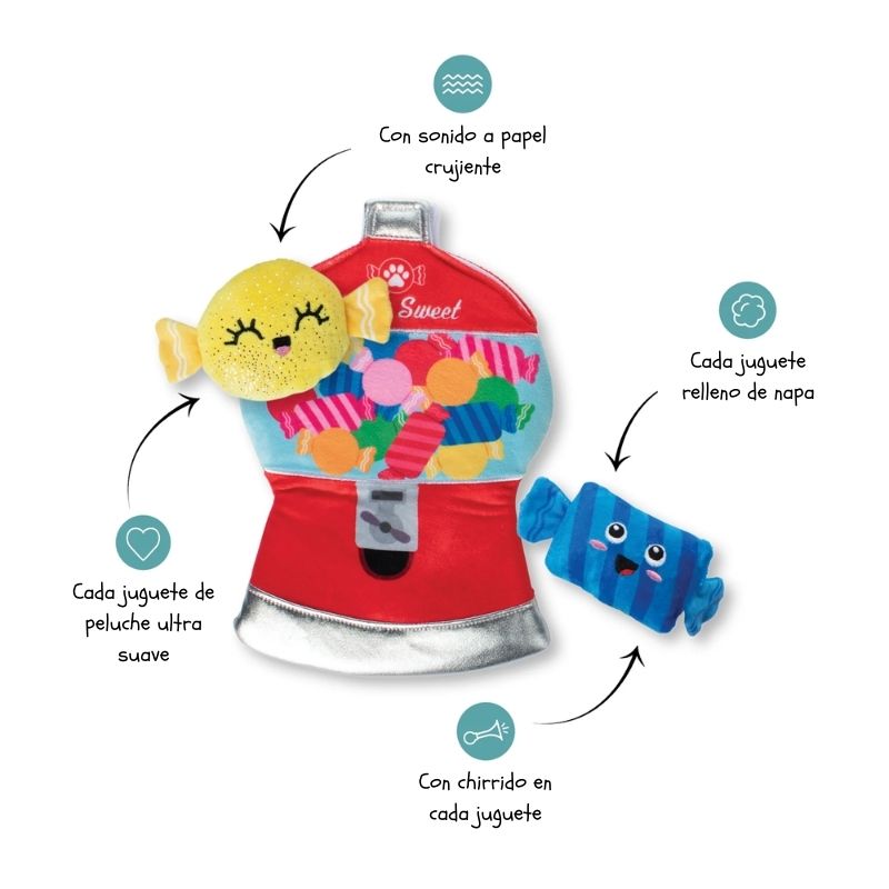 Nuestro juego “A Sweet Surprise” es perfecto para perros con mucha energía que disfrutan de los juguetes interactivos tipo rompecabezas. Este juego incluye una bolsa para madriguera con papel arrugado y 2 minijuguetes con chirriadores fuertes y papel arrugado. Mantenga a los perros entretenidos y ocupados con la diversión del escondite: simplemente esconda los minijuguetes dentro de la bolsa para madriguera, haga chirriar o arrugar un minijuguete o arrugue la bolsa y observe a su perro intentar descubrir cómo sacarlos. ¡Este juguete para acabar con el aburrimiento mantendrá a su perro buscando estas golosinas dulces!