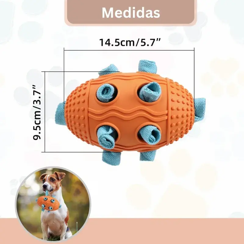 ¿Sabías que los juegos olfativos cansan más a tu peludito? Este juguete no solo está hecho para los juegos de jalar, atrapar y buscar, sino que sus pequeños agujeros están diseñados para ocultar premios y así tu engreído se entretenga buscándolos. Buscar, olfatear y encontrar deliciosos snacks para luego relajarse y descansar.