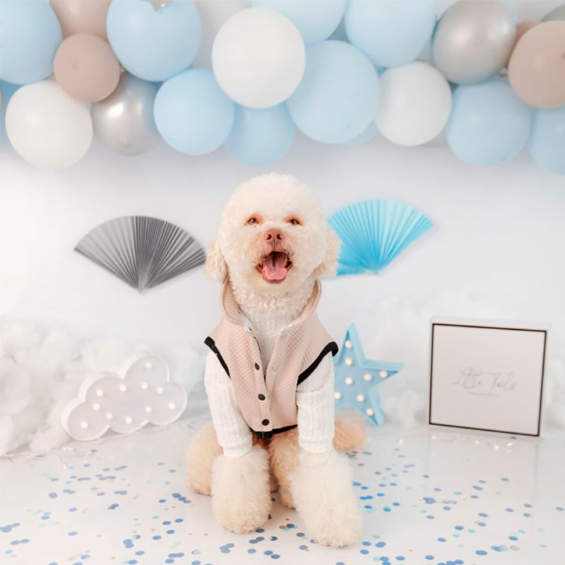 Lindo chaleco beige impermeable de cuerina con interior de piel de carnero hipoalergénico para la temporada fría. Con esta hermosa ropa de invierno, tu engreído estará preparado y calientito para las temperaturas bajas.