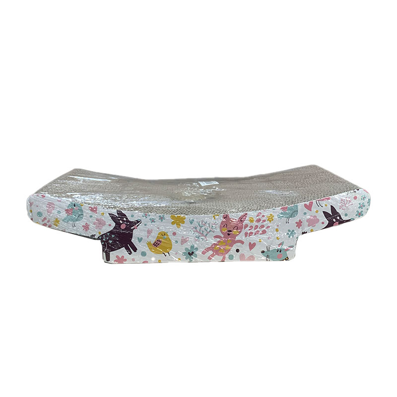 Rascador de cartón corrugado para gatos, ideal para satisfacer las ganas de rascar de tu gatito. Viene con una bolsita de catnip.