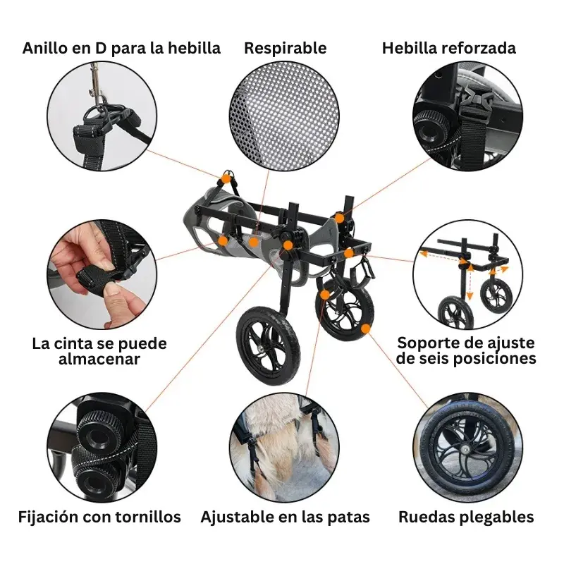Con esta silla de ruedas tu engreído podrá caminar, explorar sin limitaciones y seguir disfrutando de sus paseos con total tranquilidad, comodidad y seguridad.