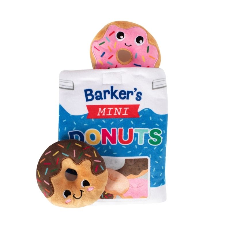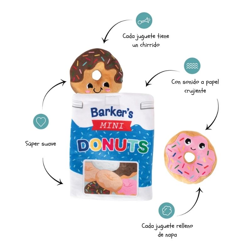 Nuestro juguete de bolsa de donuts “Eat More Hold Foods” es perfecto para perros con mucha energía que disfrutan de los juguetes interactivos tipo rompecabezas. Este juego incluye 1 bolsa para madriguera con papel arrugado y 2 minijuguetes con chirriadores fuertes. Mantén a los perros entretenidos y ocupados con la diversión del escondite: simplemente esconde los minijuguetes dentro de la bolsa para madriguera, haz que un minijuguete chirríe o arruga la bolsa y observa a tu perro intentar descubrir cómo sacarlos. ¡Este juguete para acabar con el aburrimiento mantendrá a tu perro buscando estos snacks!