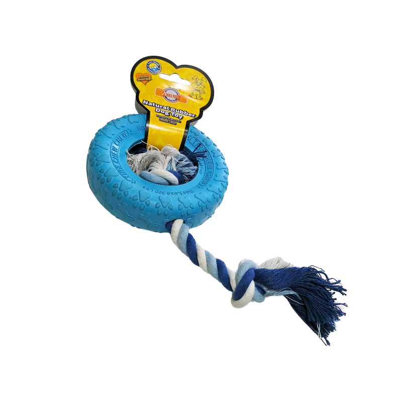 ¡Un juguete hecho para los perritos a los que nunca se les acaba la batería! Con su curioso diseño, llamará la atención de tu engreído y la soga colgante será atractiva para jalar. Perfecta para desgastar la gran energía de tu perrito en juegos de fuerza, ya sea en interiores o exteriores. También es ideal para lanzar, atrapar y buscar.