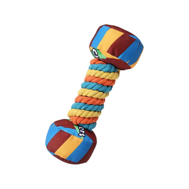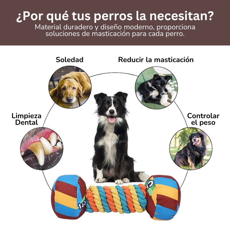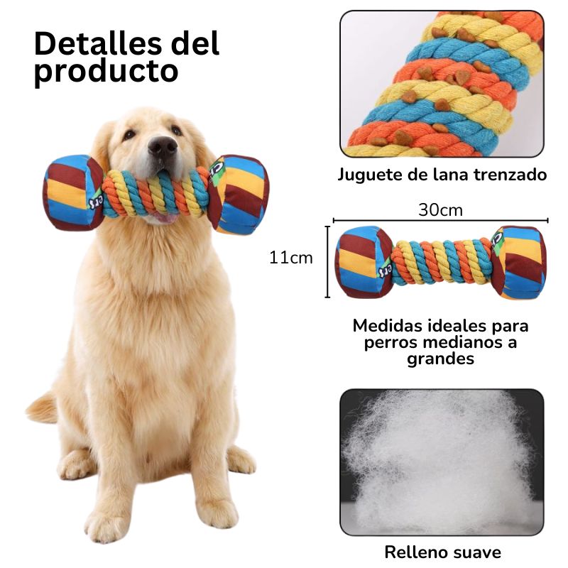 ¡Un lindo juguete para perros en forma de mancuerna! Perfecto para morder, jalar y disfrutar de horas de juego.